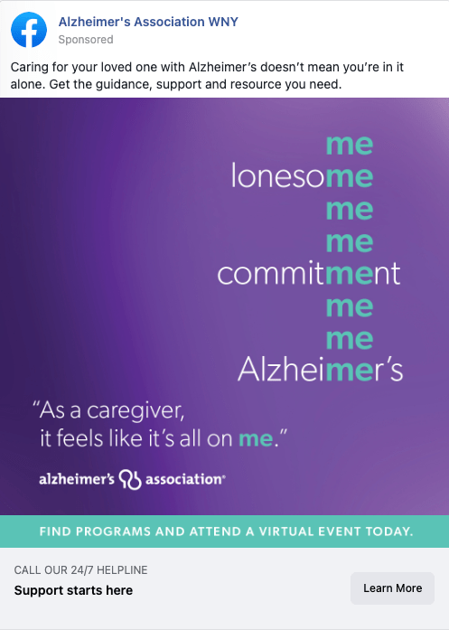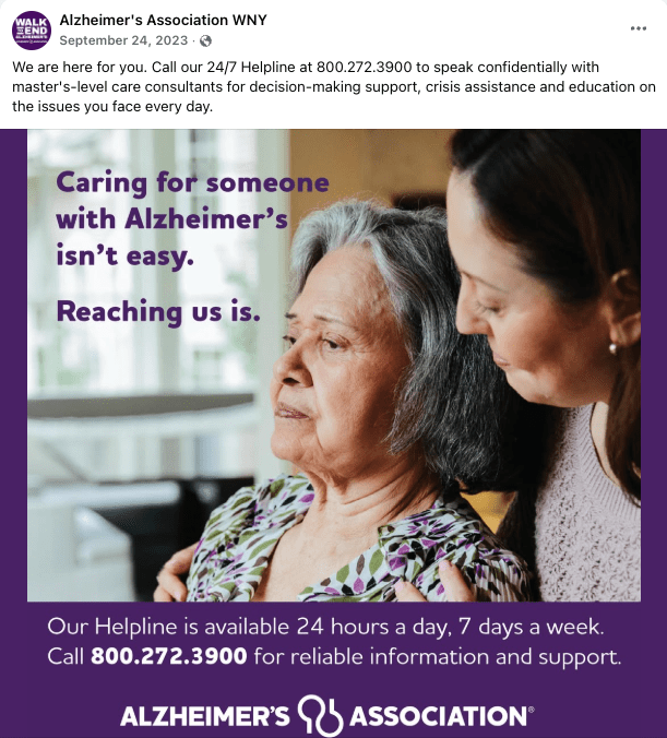 As a result, the Western New York chapter of the Alzheimer’s Association saw an increase in online engagement, traffic to their resource pages, and calls to their helpline.