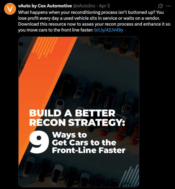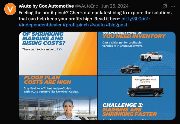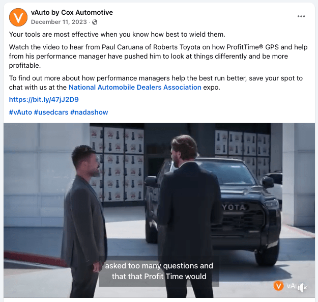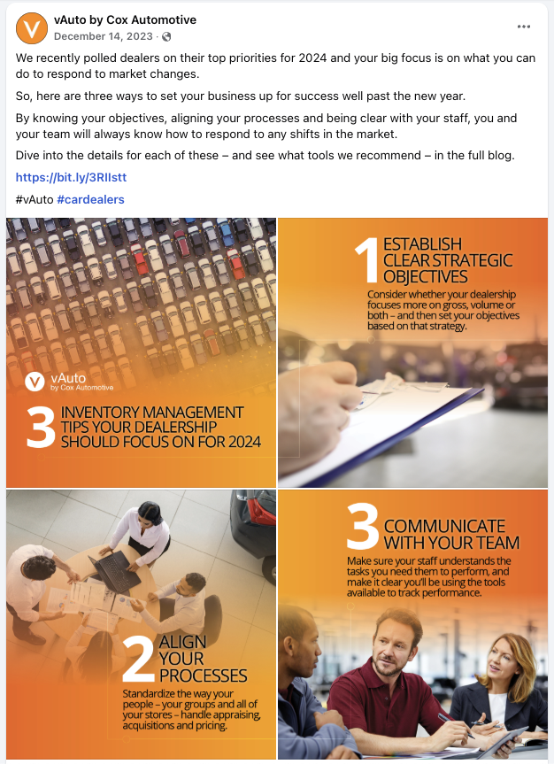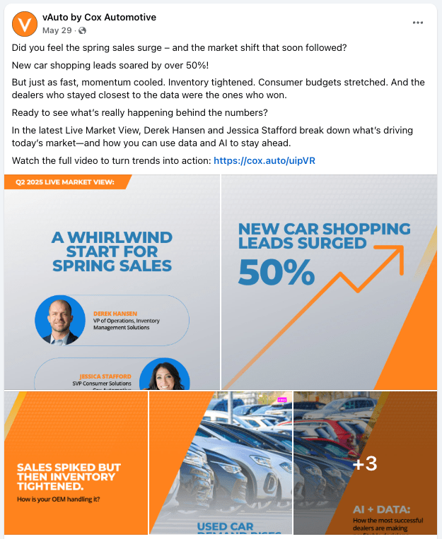 When I took over writing vAuto’s paid social ads and organic posts on Meta, LinkedIn, and X, they saw a 127.2% increase in engagement rate. Those results only grew as I continued to write for them the following year, gaining them a: