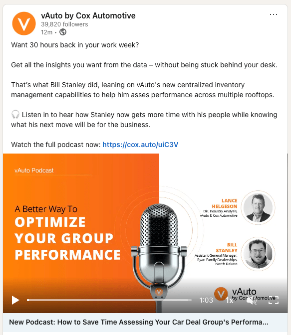 - 74% increase in Cox Automotive Mobility’s LinkedIn following within 6 months