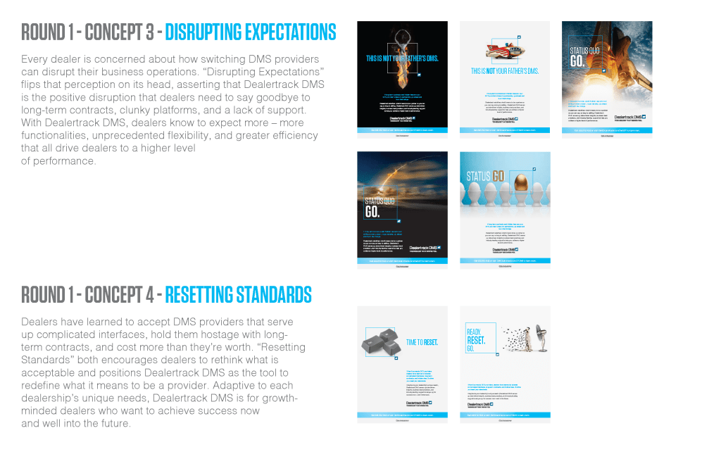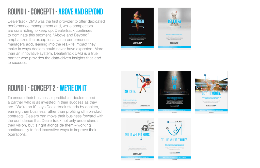 With a successful brand launch and initial campaign that helped their staff achieve 344% of their sales goal, Dealertrack asked us to explore new concepts to evolve the campaign. See the deck below.