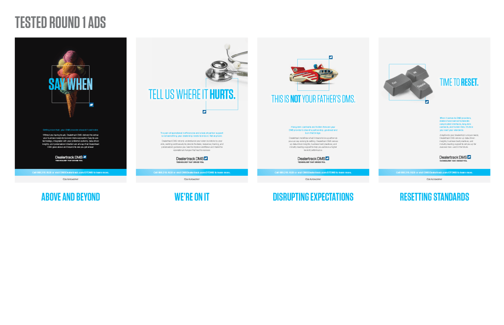 Dealertrack launched their new dealer management systems (DMS) product with a branding project in which I helped develop their brand tone and voice. That brand positioning and brand launch work kicked off the “Holding Back” campaign (see it here).