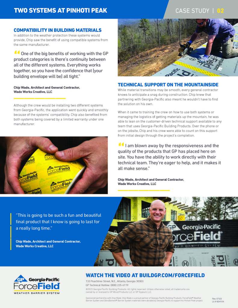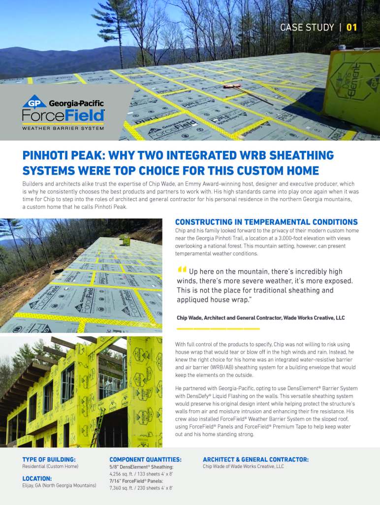 Georgia-Pacific secured an endorsement of their barrier systems from HGTV star, architect, general contractor, and producer Chip Wade. They interviewed him on the site of his new personal residence at Pinhoti Peak.