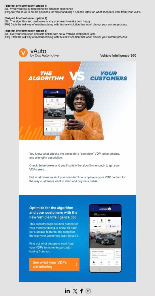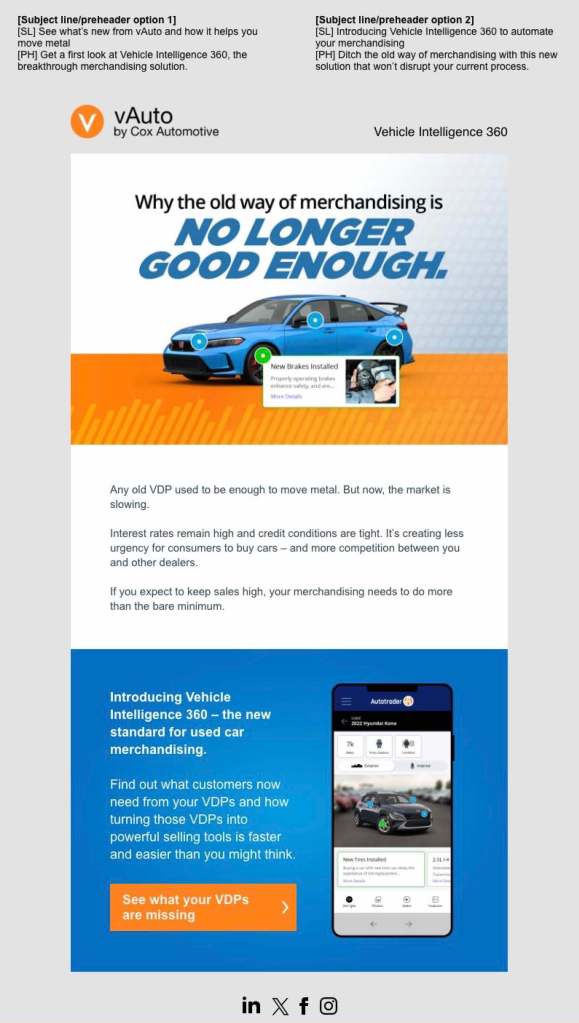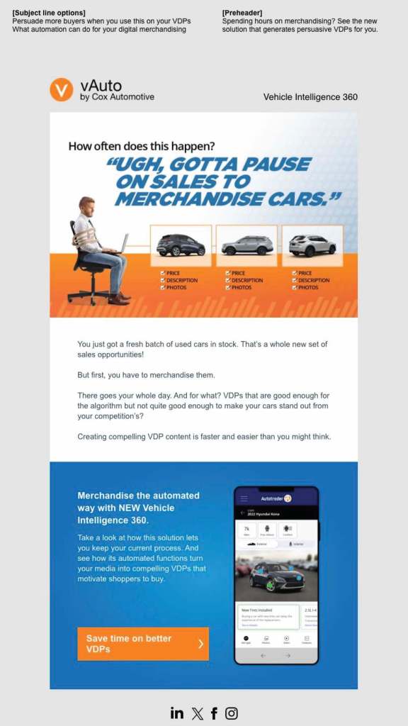 B2B – car dealership owners, principals, general managers, sales managers, marketing managers, etc.